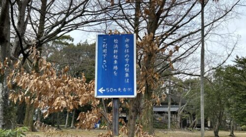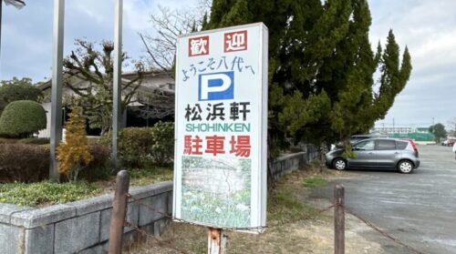 松浜軒の駐車場は神社と同じ並びにありますよ。