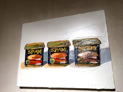 この「スパム缶」は、大量生産された商品で、本来は一寸変わらない外観のものです。