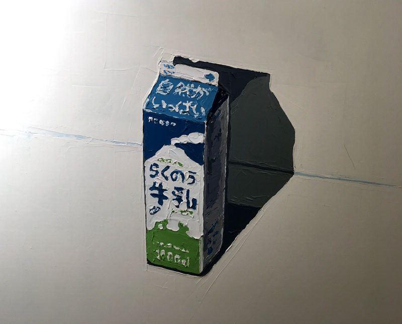 単なる写生ではなく、当たり前のように日常に溶け込んでいる「らくのう牛乳」でも、つい立ち止まってしまうような立体感のある絵に仕上がっています。