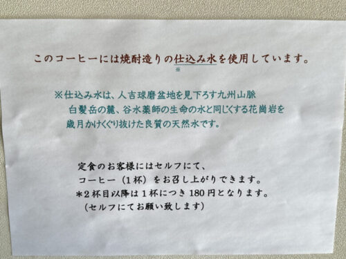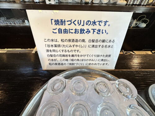温かいお茶も出てきますが、焼酎つくりの水もあります。