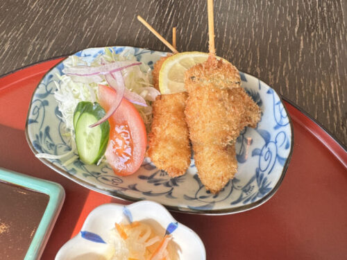 串揚げは3種この日は、豚バラ、鳥身、しいたけの3本でした。