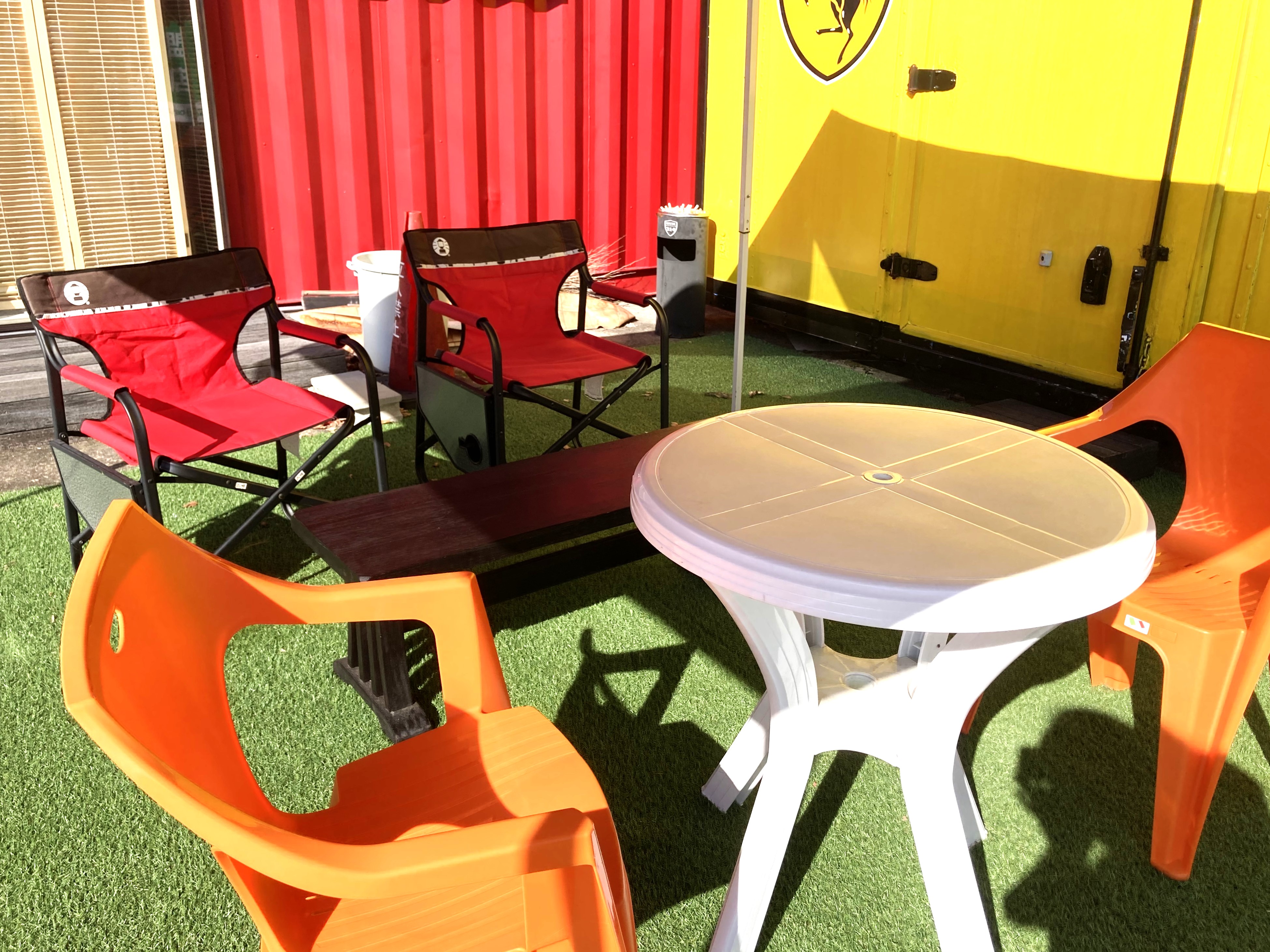 お隣にテーブルと椅子が設置してあるので、購入後にこちらで飲むことも可能。