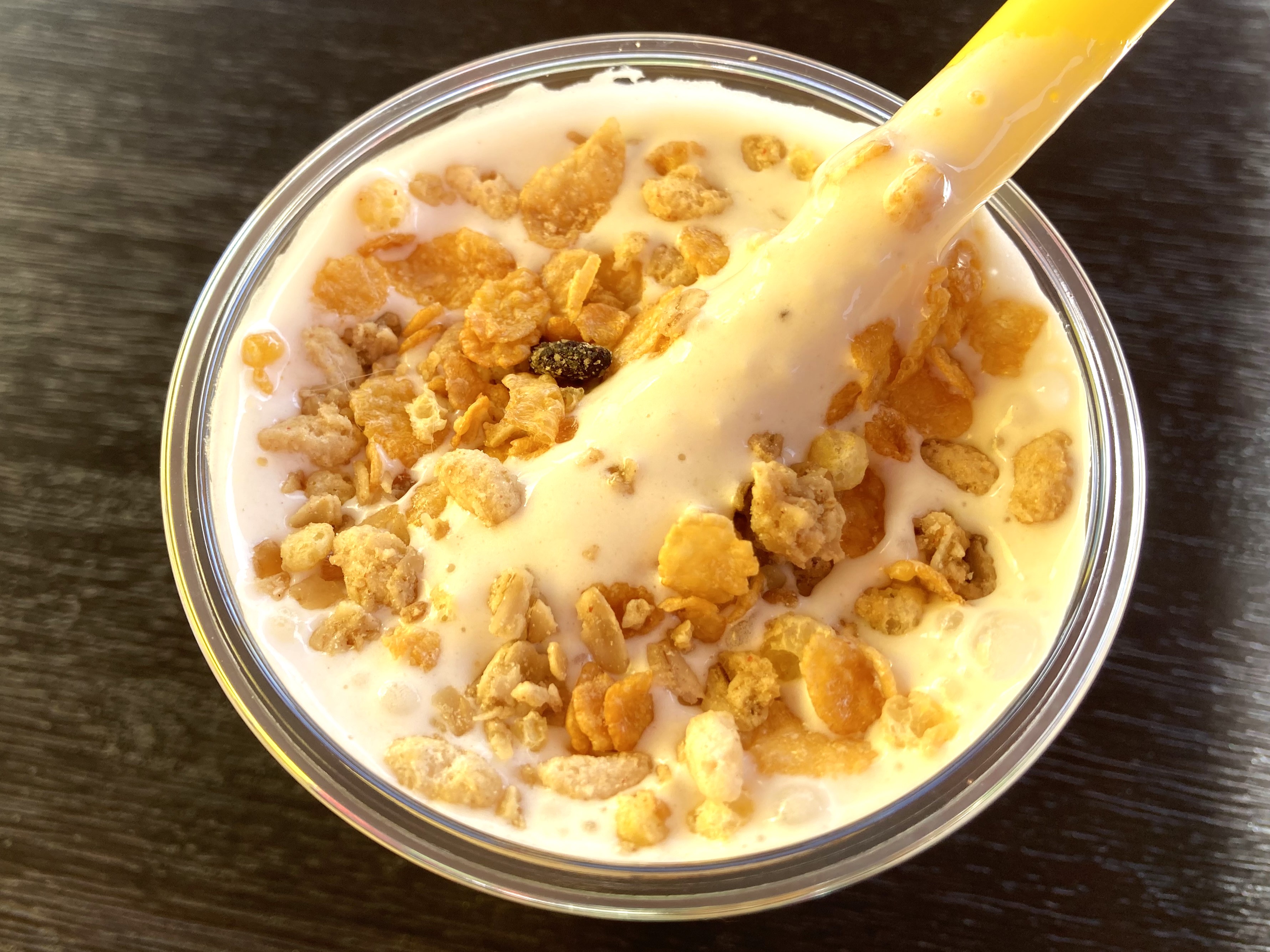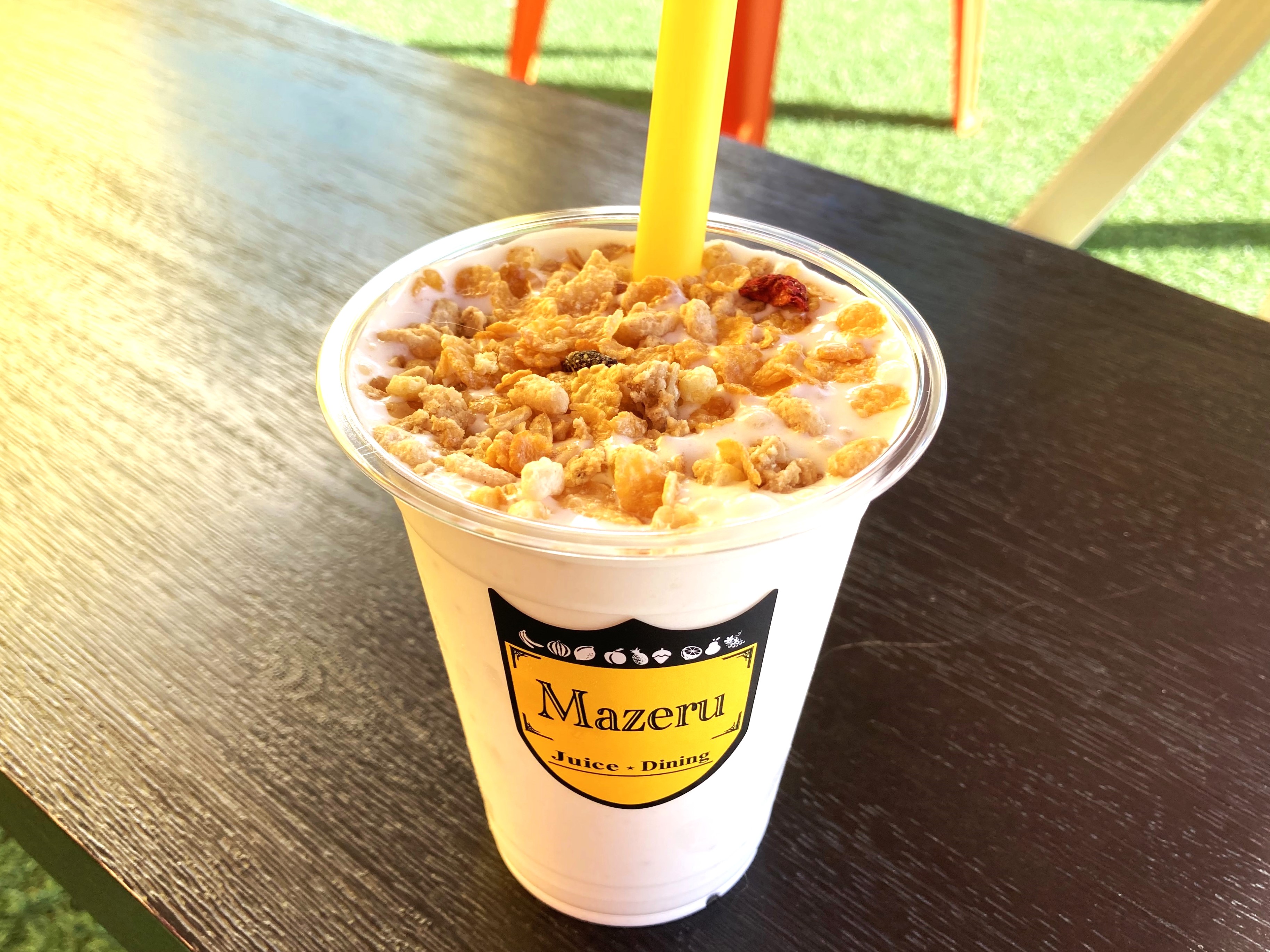 ベースでバナナミルクの上にはシリアルが乗っています。なんだか贅沢な感じがしますね。