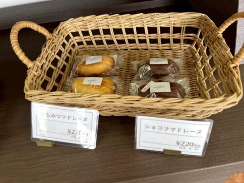 焼菓子コーナーには、丁寧に手作りされたお菓子が並びます。