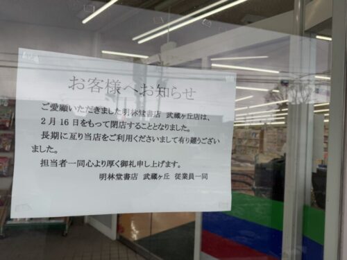 今度は、武蔵ヶ丘店が2025年2月16日をもって閉店することが決定しました。