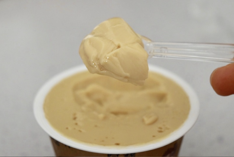 スプーンですくってみると、結構柔らかいです。いっぱいすくうとスプーンからこぼれます。実際こぼれたので、写真ではちょっと形がいびつです。さて実食。