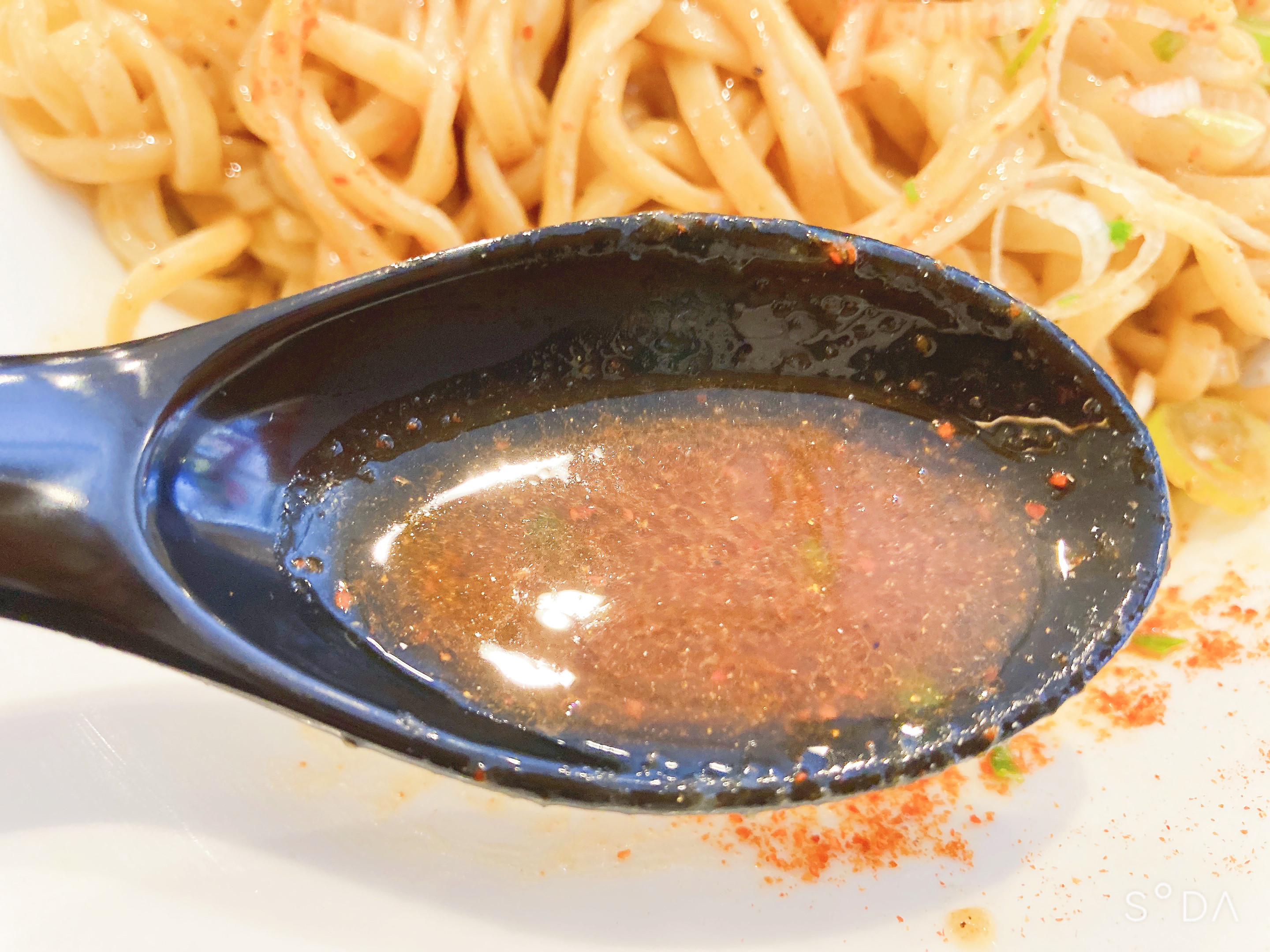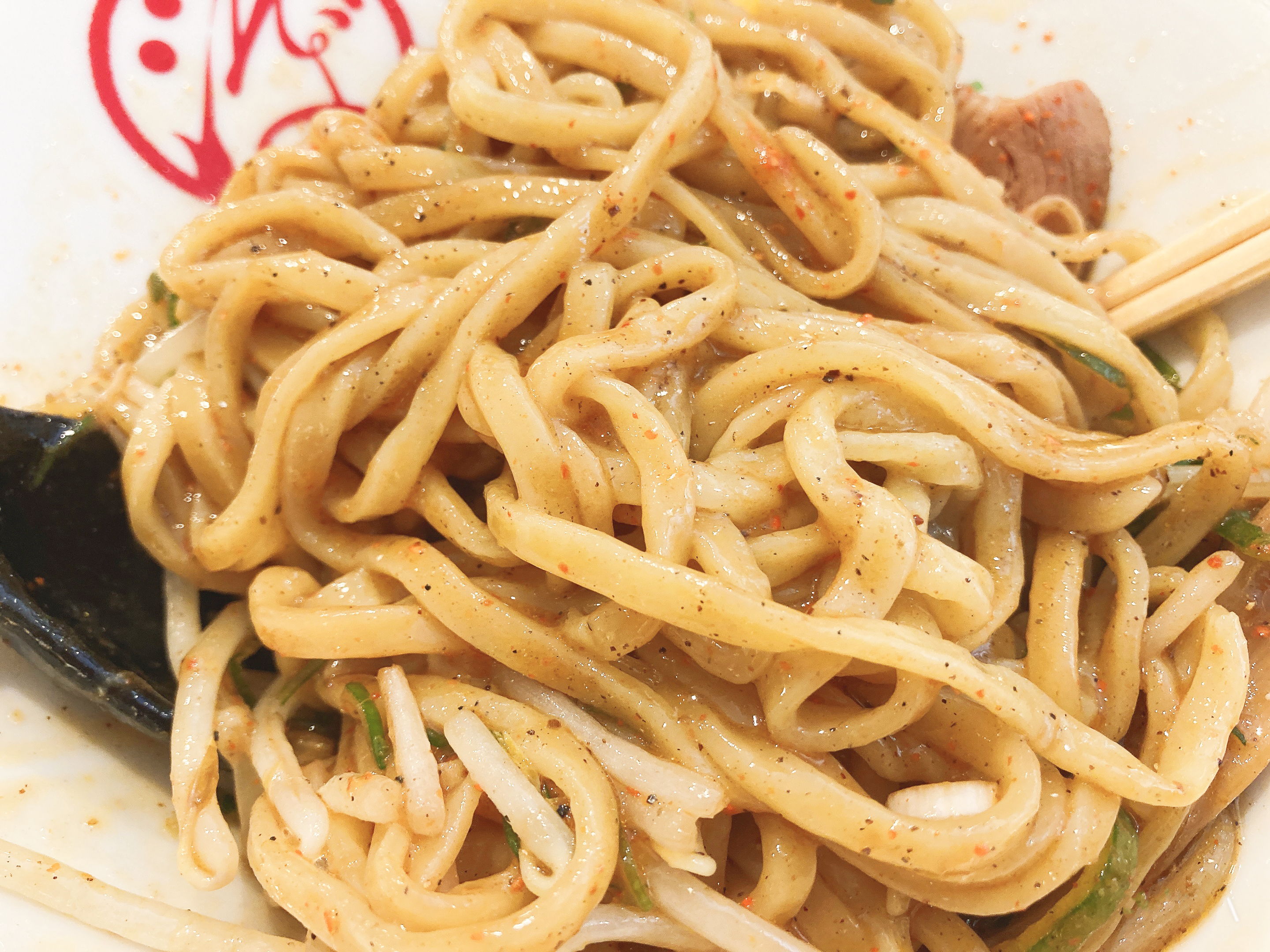 さらに油そばの上からもたっぷりと一味唐辛子がかかっています。