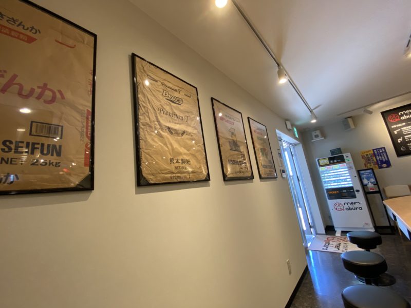 富喜製麺所監修ということで、小麦粉の袋がアート作品になって店内を飾っていました。
