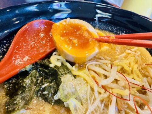 そしてこの味玉。黄金の旨味がとろとろ。感動ものです。是非味玉を食べてほしいものです。