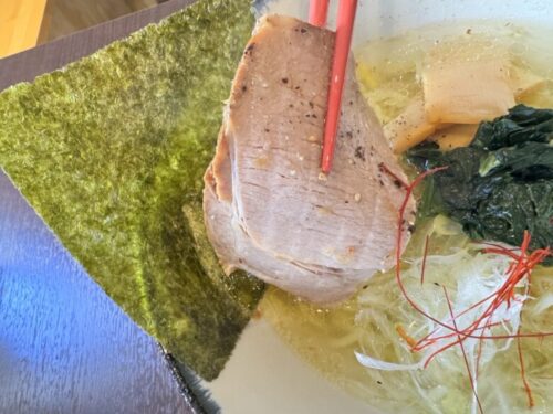 脂っぽくない、あっさりとしているけれども、もりもり食べられるチャーシューがのっています。これは濃厚味噌とは真逆の味わいで、悩みますね~!