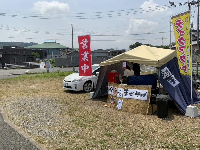 御船町の国道445沿いを走っていると、スポーツセンター近くの空き地にポツンとテントが。なんかのお店だろうかと立ち寄ってみると、6月8日にオープンしたばかりの台湾まぜそばのお店でした。名前は「麺処 侍」。