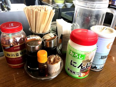 カウンターに置かれている大きな調味料。これも前営業引き継ぎで、今回も無事置かれておりました。
