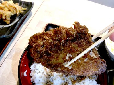ソースに漬けていますので、衣はしっとりして旨味を封じ込めています。