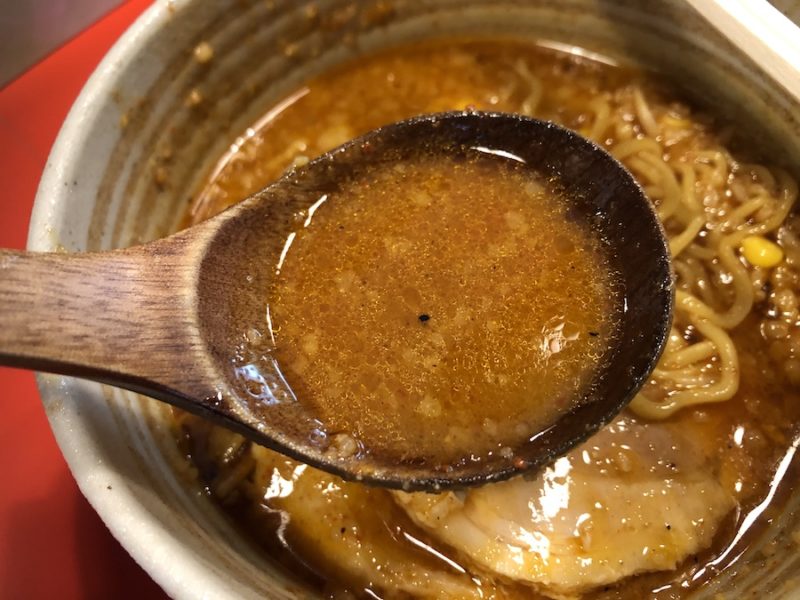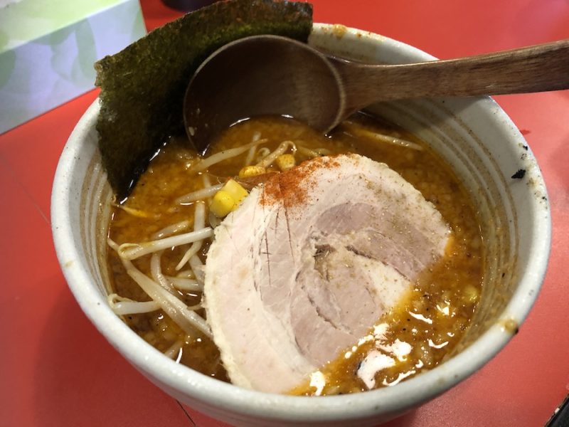 もちろん激辛ではない「味噌ラーメン」(税込800円)もあります。麺と一緒に北海道から取り寄せている味噌と魚雷特有のピリ辛さがあるスープなので、通常の味噌ラーメンよりは少々辛めです。
