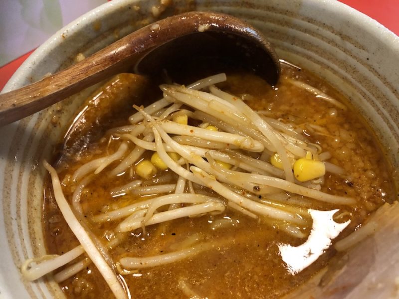 カウンター席には一味唐辛子が置いてあるので、辛みを追加しようかと思いましたが後から胃が大変なことになりそうだったのでグッと抑えました。激辛が大好きで胃腸が強い人は、ぜひ辛さをプラスしてみてください。