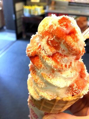 実際、少しピリッと感じますが、アイスの甘みで随分相殺されます。辛さを甘さで相殺するということ自体が謎の食べ方ですが…