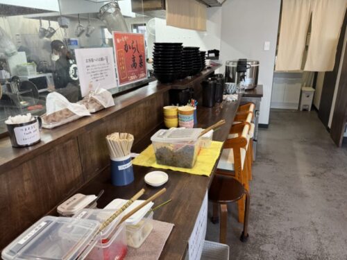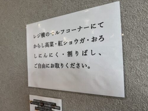 セルフでからし高菜、紅ショウガ、おろしにんにくも用意されています。盛沢山!