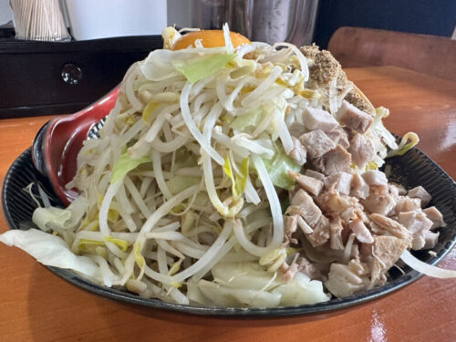 【野菜大盛 特製油そば】(950円)こちらは野菜の量が追加料金なしで、野菜普通250gか野菜多め400gを選べます。