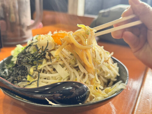 【野菜大盛 旨辛油そば】(1000円)こちらも野菜の量が選べます。