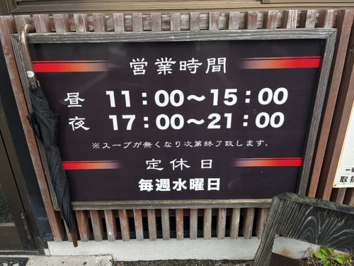 定休日は水曜日、営業時間はお昼が11:00〜15:00、夜は17:00〜21:00。