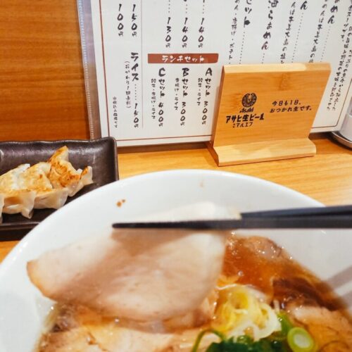 お腹もすいていたので、ちょっと贅沢に餃子・唐揚げ・ごはんのCセットをプラスして待つことしばし。