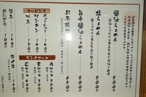 塩も醤油も奄美のものを使っているそうで、どれを注文しようか迷いましたが、一番初めにある醤油ラーメンにしました。