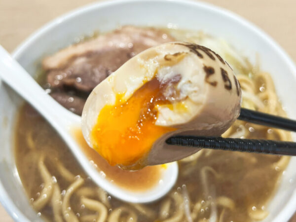 煮たまごもトッピングしました。煮たまごは特注の焼印がしてあります。