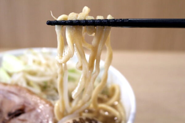 こちらは自家製麺。オーションというラーメン二郎で使われている小麦粉が使われています。他の小麦粉も使って試作されましたが、二郎系ラーメンの特徴であるワシワシ麺を作るにはこの小麦粉が1番合うんだそう。