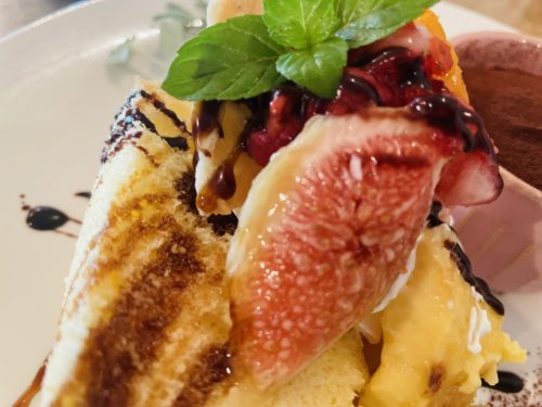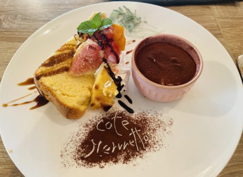 ふわふわのシフォンケーキに濃厚プリンを凍らせて作ったカタラーナがとても美味しい。レストランで働いておられた娘さんの担当のデザートです。