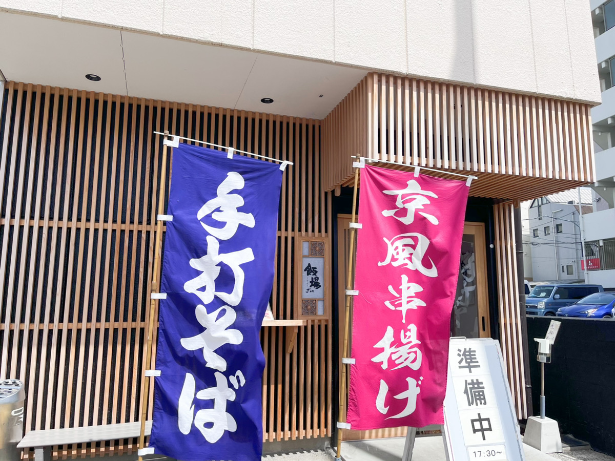 熊本市中央区妙体寺町にある「京風串揚げの店 飯場Jin」は、お蕎麦と京風串揚げが楽しめるお店。