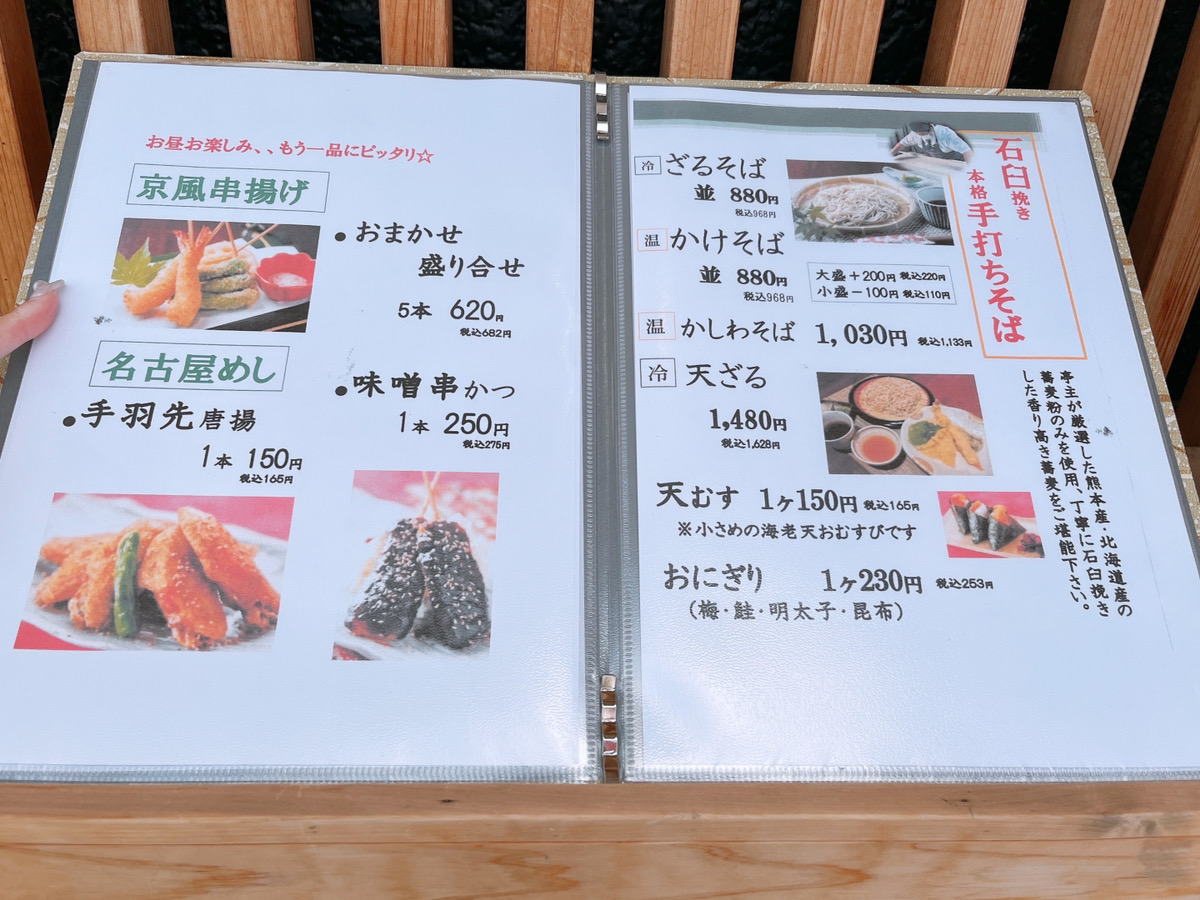 お店の前には“手打ちそば”、“京風串揚げ”と書かれたのぼりが。