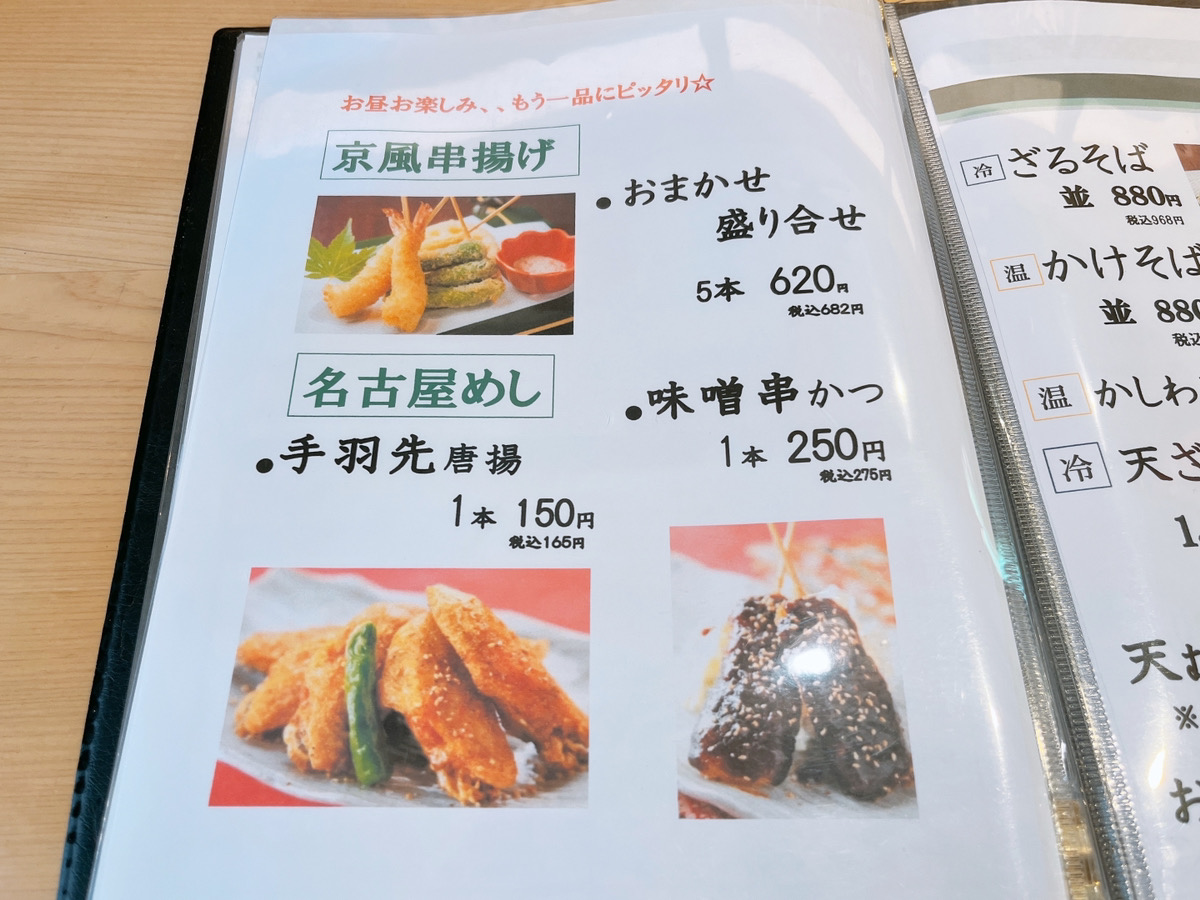 今回は京風串揚とおそばの両方が食べられる京風串揚おそばセット、そしてどうしても気になった味噌串かつ、こちら2つを注文しました!