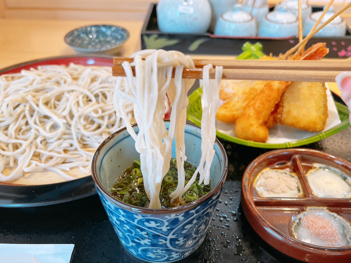 まずはそばから。細めにカットされています。使用されているそば粉は、熊本産と北海道産のものだそうです。