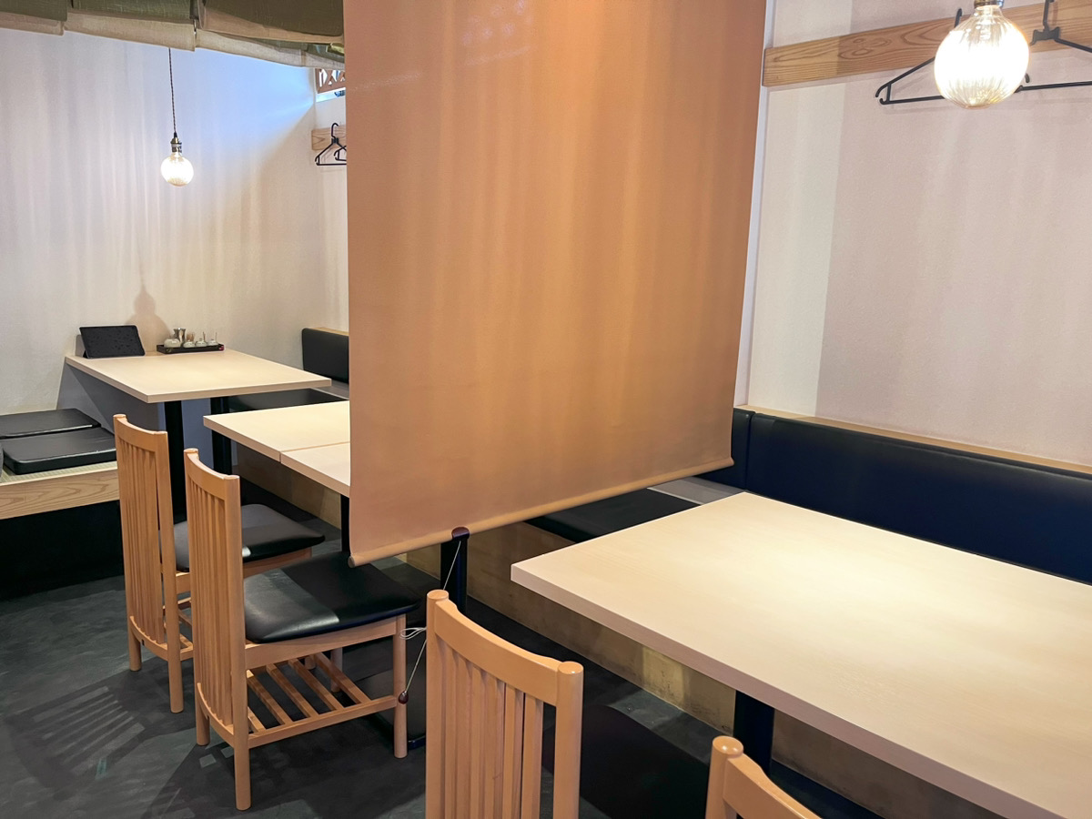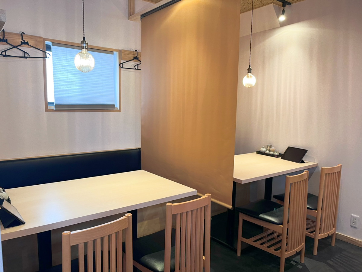 店内も和モダンな雰囲気が上品でお洒落。壁やインテリア、細かいところまでこだわられています。