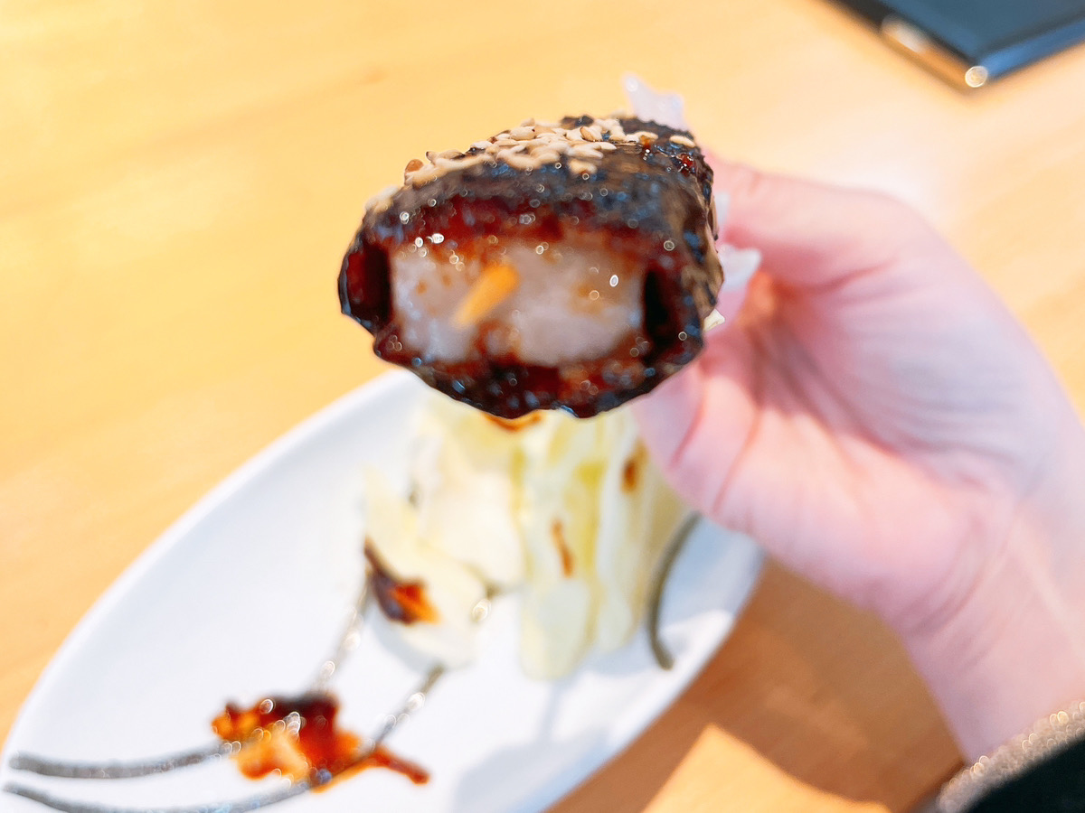 衣の中は豚肉が使われていて、この豚肉はプリンセスポークなんだそう。(ピンボケごめんなさい)