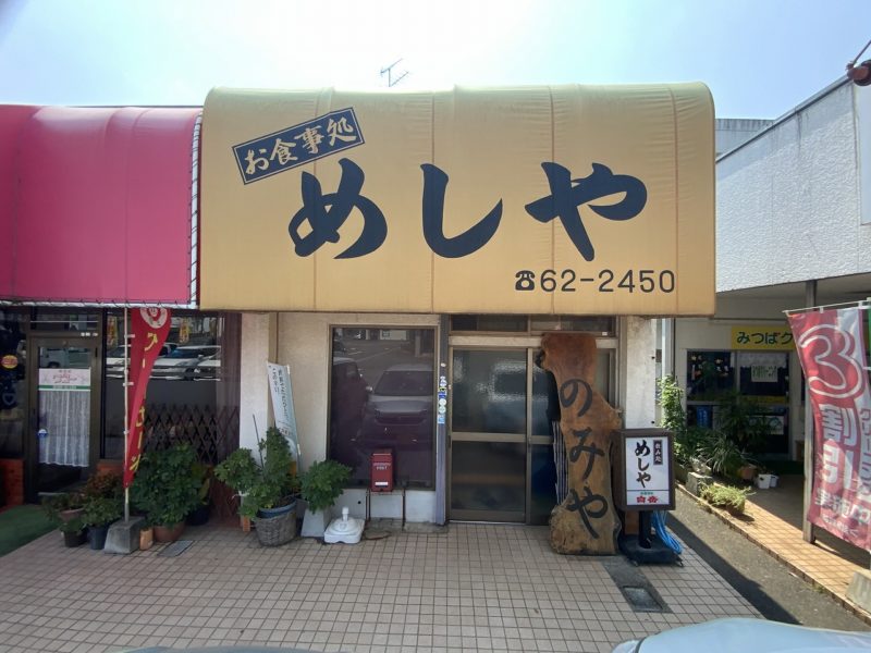 熊本市内から八代へ向かう途中、3号線を走っているときに偶然立ち寄った氷川町宮原にある「めしや」。外観から感じる圧倒的老舗感に惹かれ、営業しているかどうかも分からないなか飛び込んでみると、レトロとかそういうレベルでなく「あ、昔こういうお店あった」と思うような昭和がそのまま残ったようなお店でした。
