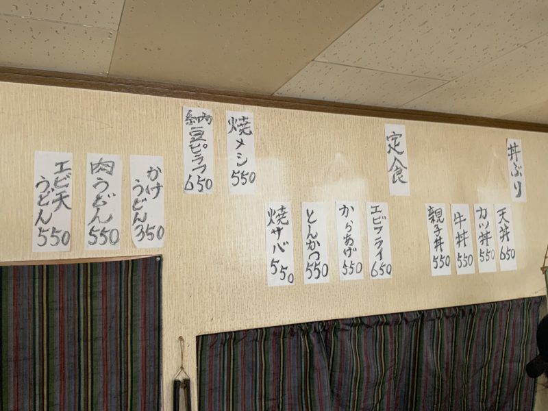 壁に張り出されている定番メニューがあります。550円~650円とリーズナブル。
