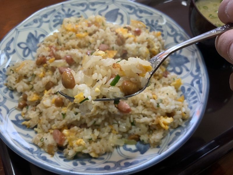 ですが、この納豆の量が絶妙で、しっかり納豆味がする中でちゃんとチャーハンの味付けも生きてるんです。