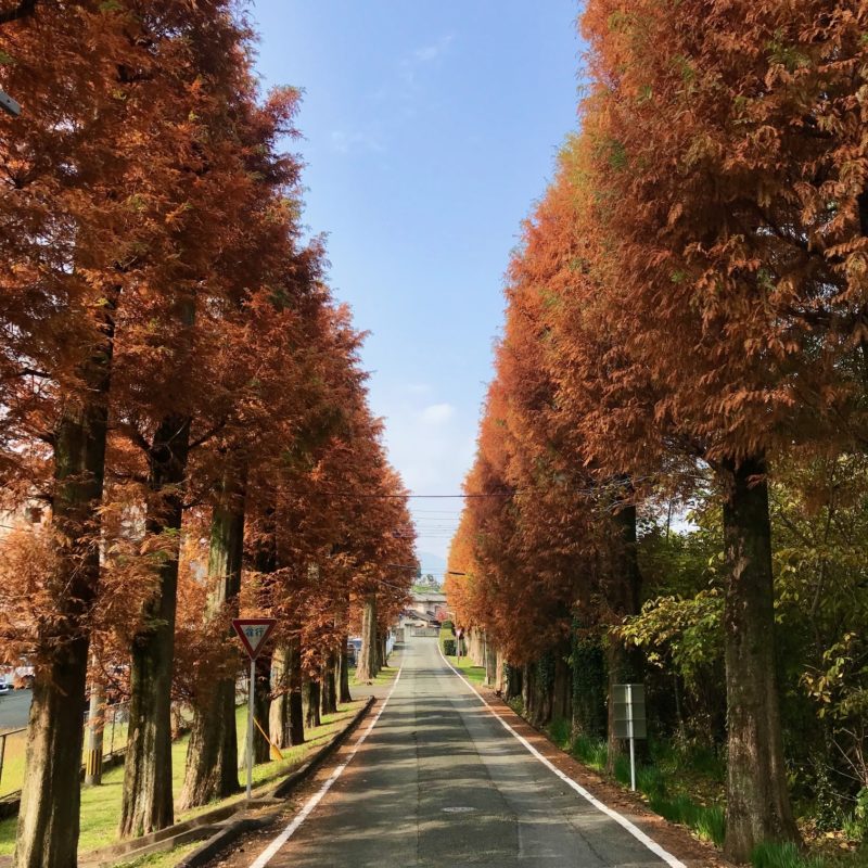 熊本のメタセコイアは、立田山の森のふちにたたずむ、風情たっぷりの静かな並木道です。