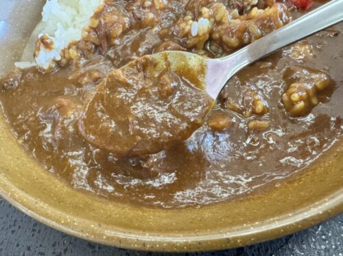 トロみのあるルウ。中にゴロっと梨が入ってる…訳ではない。煮込んでトロトロに溶けているのだと思います。