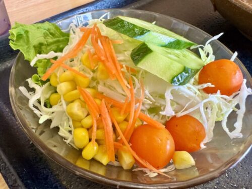 全て氷川産のサラダ、ドレッシングはお好みでかけられますが、まずは何もかけずに食べてほしい。熊本の恵みを一身に受けている気になります。