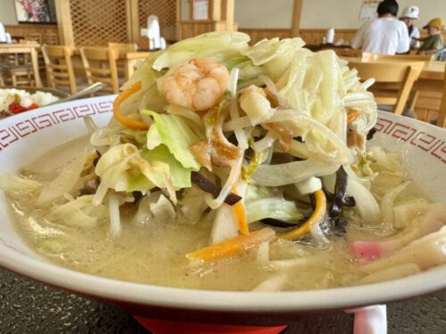 と思ったが、調べたところチャンポンが1番人気とのことでチャンポンを注文。(道の駅竜北名物の男前チャンポンは無くなってました)
