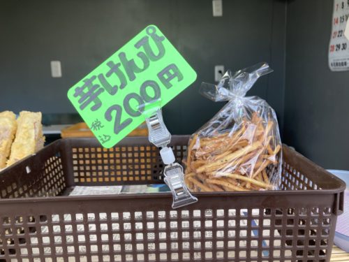 なめ子が気になったのが、芋けんぴ。ちょっと、おつまみに買おうかな。そんな誘惑が走ります。ということで、いも天2つと、芋けんぴを頂くことに!