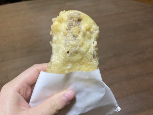 まずは、揚げたてのいも天がこちら。1個100円!