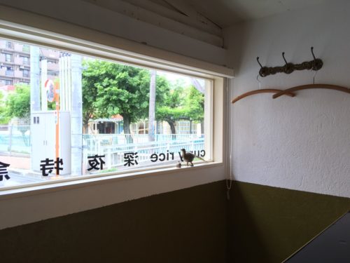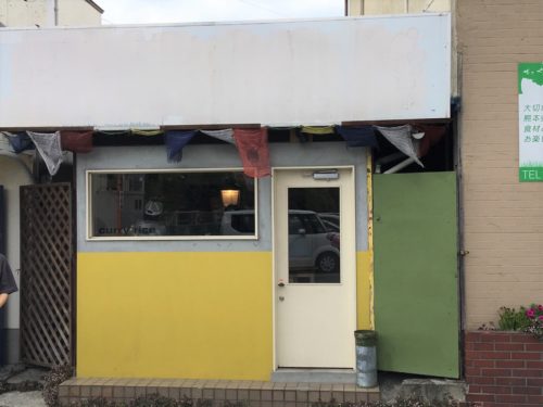 こちらの黄色い壁のお店が「深夜特急」です。大きな看板があるわけではなく、店名はガラス窓の下に「curry rice 深夜特急」という文字があるのみ。