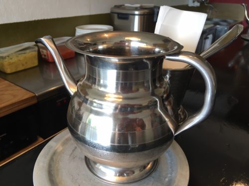お冷やの入った坪は、魔法のランプのようで雰囲気があります。