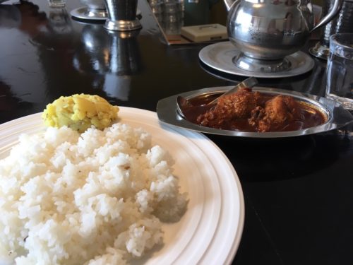 そして、手羽元が半端なく柔らかい!スプーンでほろほろとほどけ、食べるときれいに骨だけがつるんと残るような柔らかさです。アラブルタが箸休めのように、カレーの辛さを和らげてくれます。