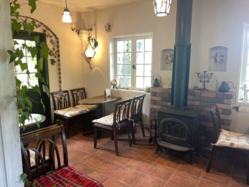 店内にも席があり、薪ストーブも設置されています。