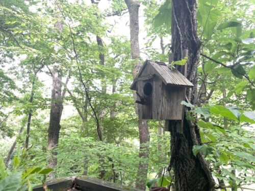 かわいい巣箱も設置されていて、この豊かな森の中にいるだけで、心が解きほぐれていくよう…。
