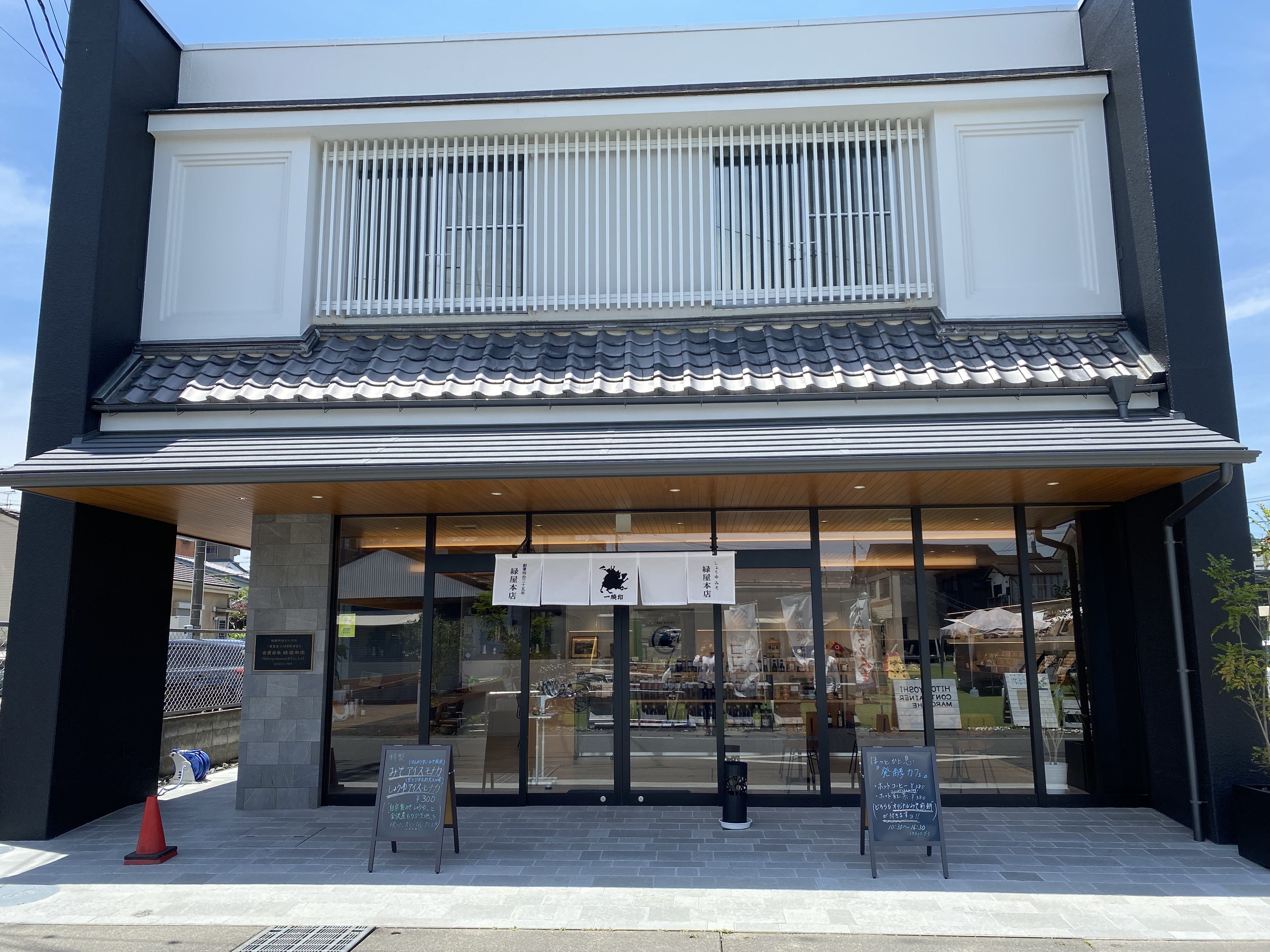 漆喰の白と黒、屋根瓦がモダンな建物。新たな店舗になっても、創業120年の貫禄を感じる建物ですね。